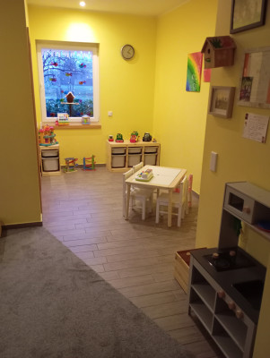 Ess- und Kreativraum, der Flur sowie ein Badezimmer zur Verfügung. Die Räume sind liebevoll eingerichtet und bieten den Kindern einen Ort zum Wohlfühlen, Entdecken und Spielen.